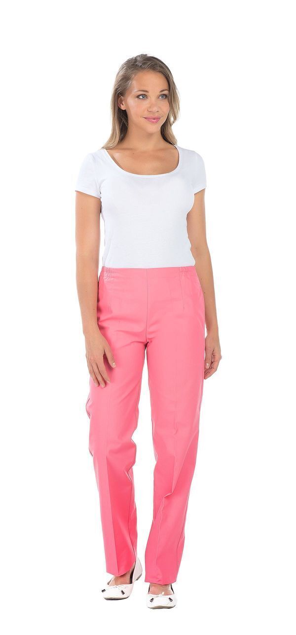 Pantalon femme. Taille semi-élastiquée effet ventre plat. 2 poches italiennes. E.J. : 82 cm.