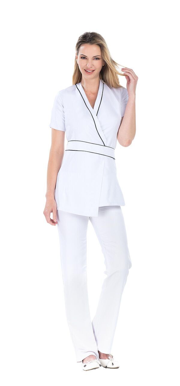 Tunique à fermeture croisée cache-cœur, ceinture et lien.