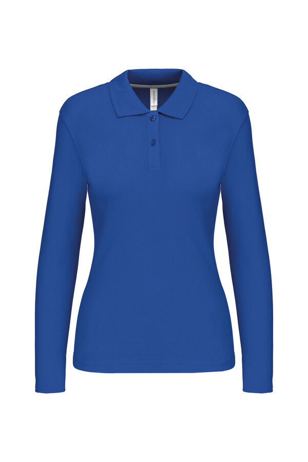 Polo col en bord-côte, patte de boutonnage 3 boutons. Bande de propreté contrastée à l’encolure. Fentes latérales. Manches longues, bas de manche finition en bord-côte. Finition double aiguille bas de vêtement. | Maille piquée.