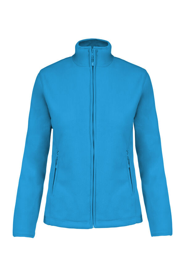 Veste micropolaire femme. Col montant. Fermeture centrale zippée. 2 poches côtés zippées. Biais de finition au col, poignets et zip. | Traitement anti-boulochage. Coupe cintrée.